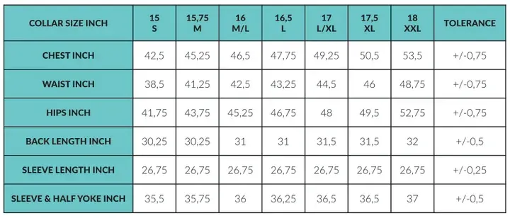 Spread collar, Australian mother of pearl buttons, and single button cuffs
